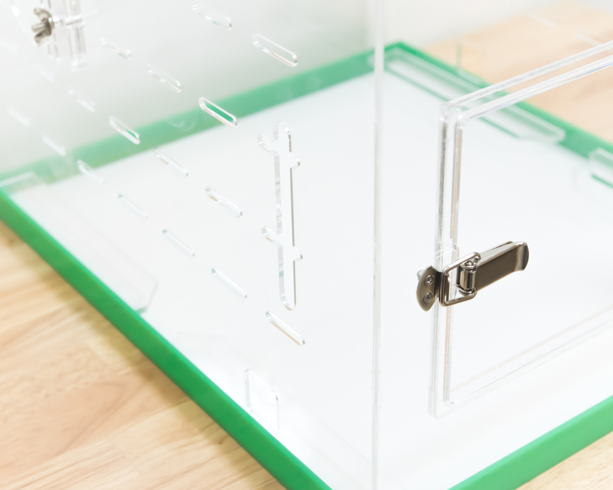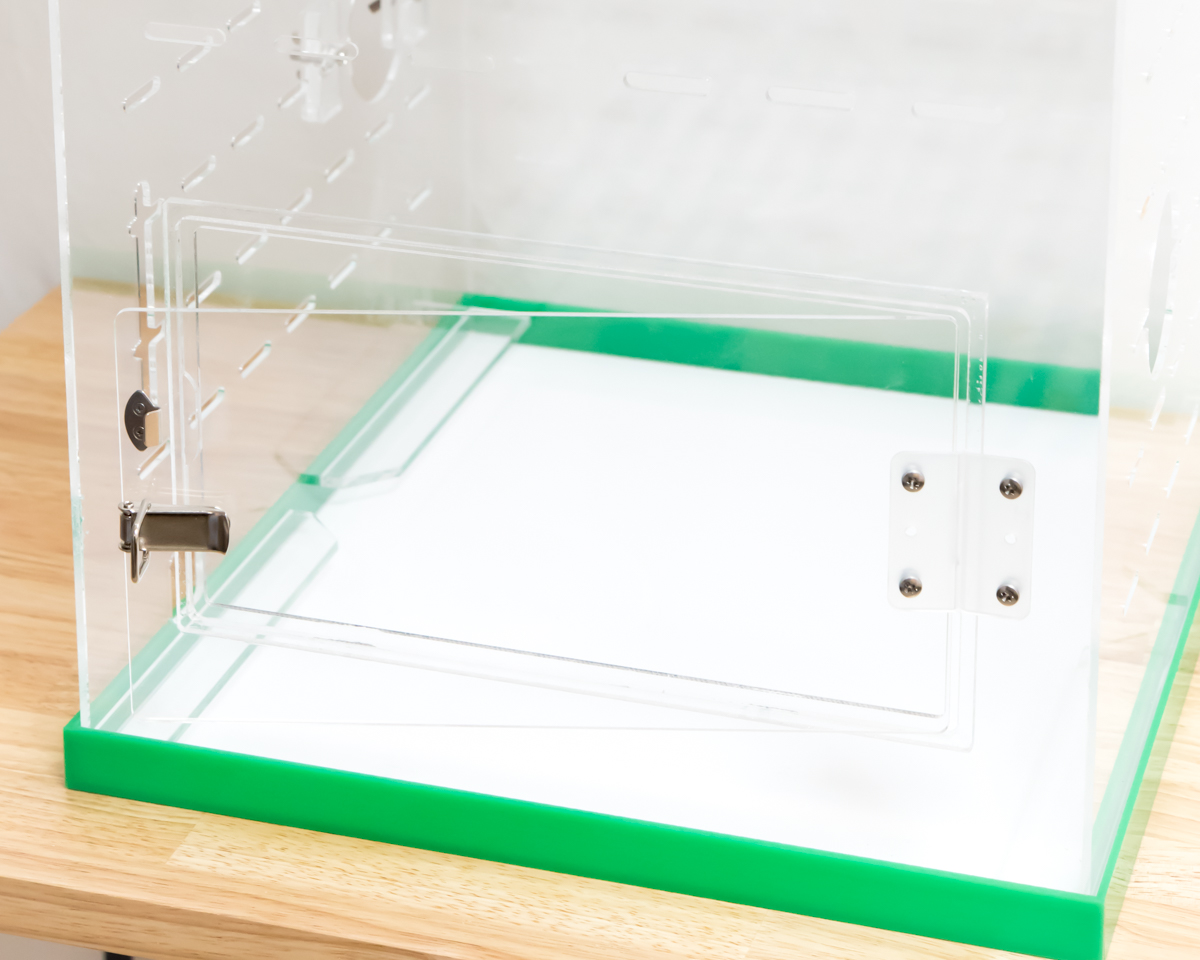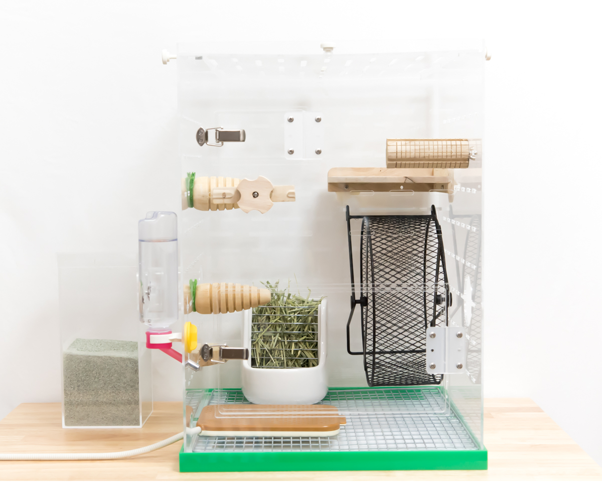デグーなどの上下に動くぺットのためにデザインされたアクリルケージです。 透明感が高く、どこからでもペットの姿をご覧頂けます。