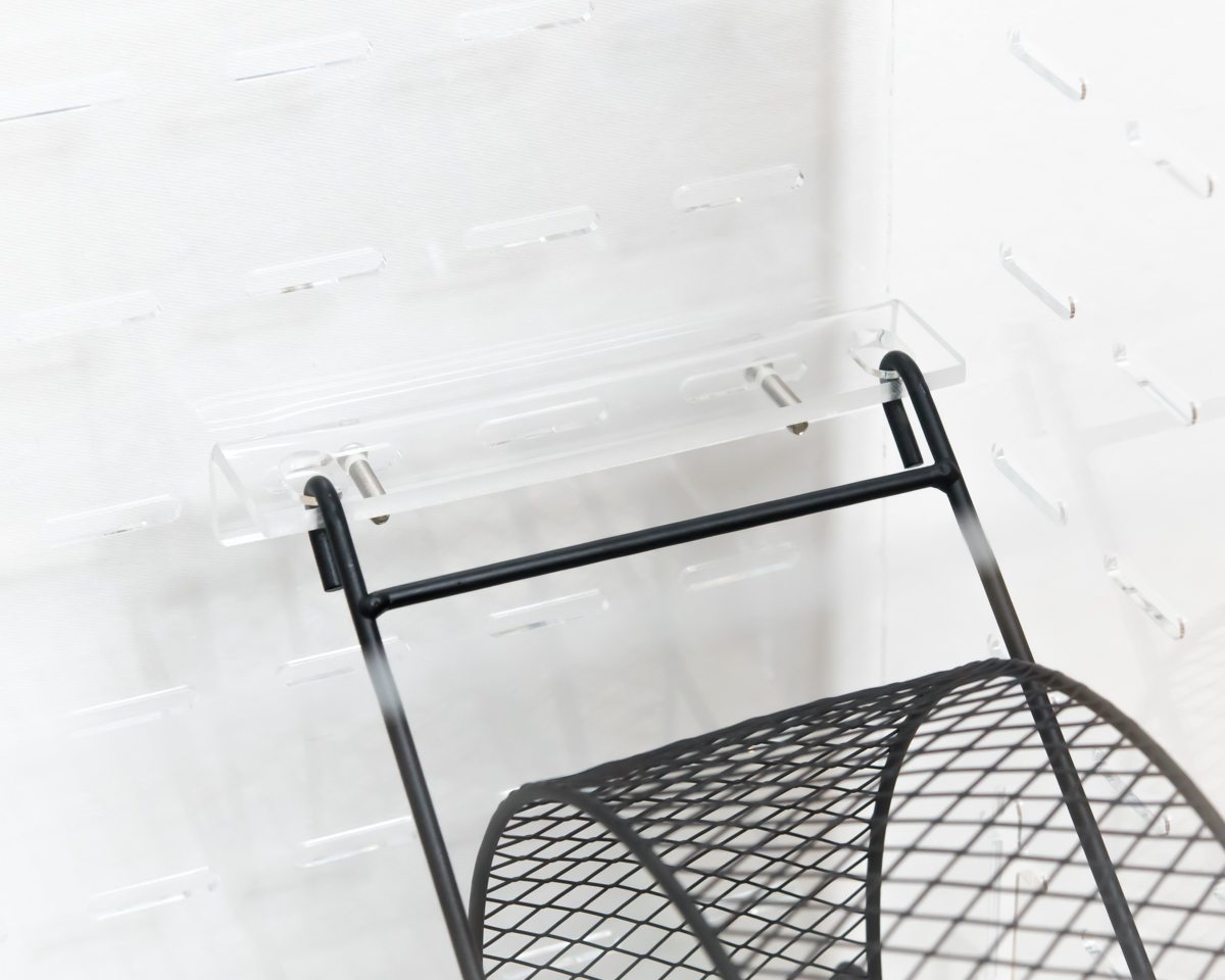 止まり木やステージを取り付けるために、側面と前後面には穴があけられています。SANKO社リラックスステージ、コーナーステージ小、